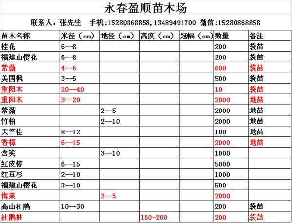 下面由闽南花木网小编介绍下福建永春盈顺苗木场近期主要苗木: