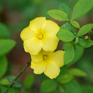 小灌木,高达1米:树皮灰色,无毛,枝干后有纵沟纹。叶纸质,椭圆形或倒卵状椭圆形,长2-8.8厘米,宽0.7-3.5厘米,先端急尖或近圆形,有短尖,基部楔形,全缘或有圆齿状锯齿,表面深绿色,背面浅绿色,干后表面灰褐色,背面灰绿色,背面中脉稍凸;叶柄长8-25毫米;托叶小,早落。花序顶生或腋生,或单花腋生;花有大有小,直径1.4-3厘米;萼片5,分离,披针形,长约9-12毫米,宽约3毫米,宿存;同一植株上的花的花瓣有5片有4片,黄色,分离,旋转排列,长1.7-3厘米,宽1.3厘米,早萎;雄蕊5,长约13毫米,花丝下部两侧扩大成翅状或瓣状,基部合生成环,花药长约2毫米,退化雄蕊5,锥尖状,与雄蕊互生;腺体5,与雄蕊环合生;子房3室,每室有2小室,每小室有胚珠1枚;花柱3枚,长7-18毫米,下部合生,柱头头状。蒴果球形,3裂,每裂瓣有种子2粒;种子具膜质翅,翅长稍短于蒴果。花果期4-12月,直至翌年1月。 二、生长习性 生长环境 生于路边、山坡、岩边或沟边的草丛中。喜阳光充足、通风良好的温暖环境,宜肥沃、排水良好的土壤。喜生于低海拔石灰性土壤中,不耐寒。 春、夏、秋三季,这三个季节是它的生长旺季,肥水管理按照“花宝”——清水——“花宝”——清水顺序循环,间隔周期大约为1~4天,晴天、高温期间隔周期短些,阴雨天低温期间隔周期长些或者不浇。 冬季:在冬季休眠期,主要是做好控肥控水工作,肥水管理按照“花宝”——清水——清水——“花宝”——清水——清水顺序循环,间隔周期大约为3~7天,晴天或高温期间隔周期短些,阴雨天或低温期间隔周期长些或者不浇。 对于地栽的植株,春夏两季根据干旱情况,施用2~4次肥水:先在根颈部以外30~100公分开一圈小沟(植株越大,则离根颈部越远),沟宽、深都为20公分。沟内撒进25~50斤有机肥,或者1~5两颗粒复合肥(化肥),然后浇上透水。入冬以后开春以前,照上述方法再施肥一次,但不用浇水。 温度