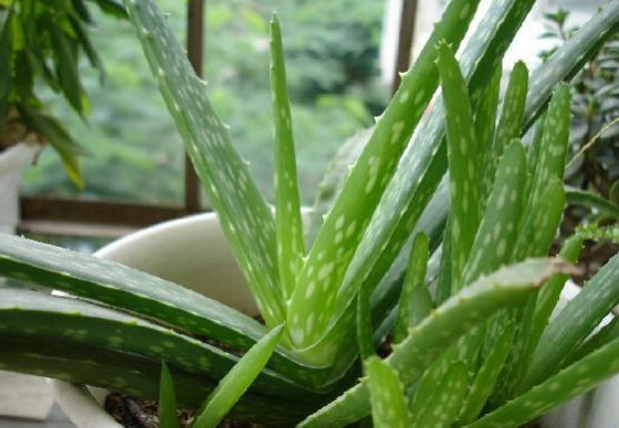 芦荟(学名:aloe vera)芦荟属,为百合科多年生常绿草本植物,叶簇生、大而肥厚,呈座状或生于茎顶,叶常披针形或叶短宽,边缘有尖齿状刺。花序为伞形、总状、穗状、圆锥形等,色呈红、黄或具赤色斑点,花瓣六片、雌蕊六枚。花被基部多连合成筒状。