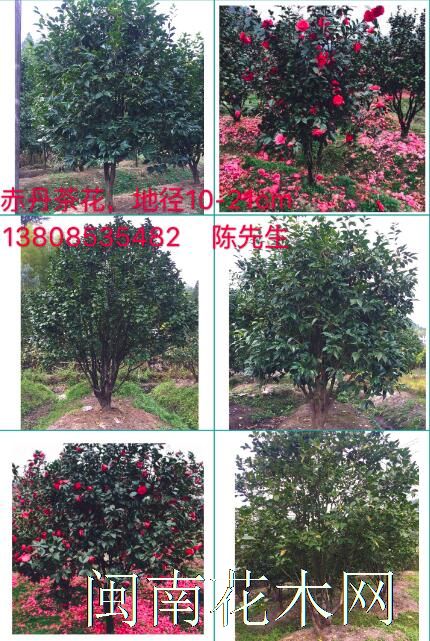 赤丹茶花:地径10-21cm, 高3.5-5m, 冠幅2-3.5m, 本场自种自销,欢迎致电咨询!