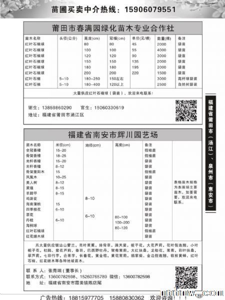 如果有想出版下期花木商情杂志的,可以联系下面电话!