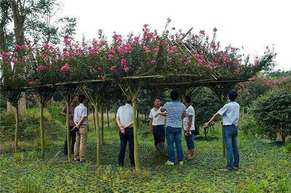 温江区红花紫薇花木协会郭朝建会长还带着我们参观了紫薇园,开阔了我们的眼界,收获颇多,在这里我们看到了凉亭紫薇造型,蒙古包紫薇造型,花瓶紫薇造型,柱形紫薇造型等,很值得我们借鉴学习。
