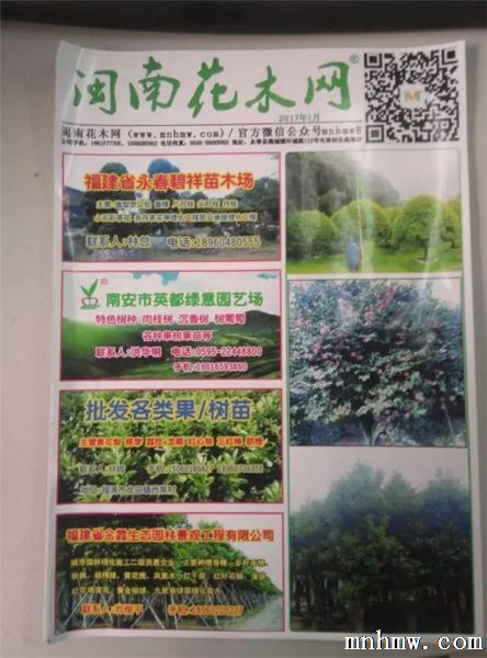 赠送:1.第四期闽南花木网商情期刊彩页广告整页(期刊发行量1000份,影响辐射福建花卉苗木从业人员3000多名)