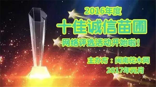 2016年度“十佳诚信苗圃”网络评选活动报名开始啦!| 作者:闽南花木网管理组 来源:闽南花木网 | 我要分享: | |