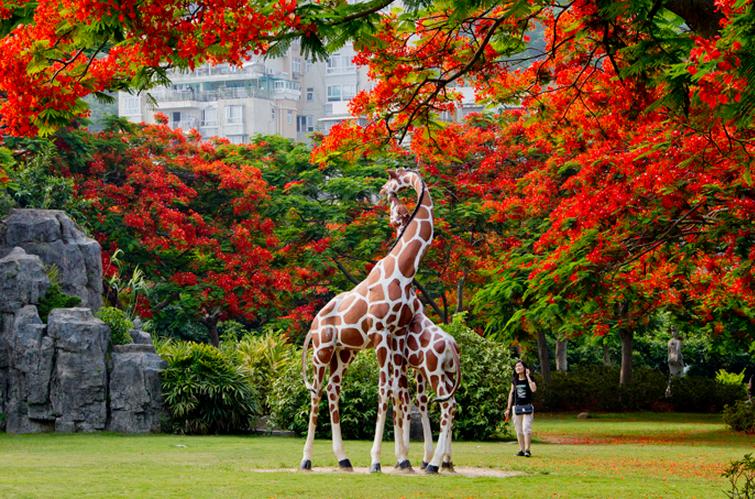 作为园林设计中常出现的凤凰木花卉,很多人都愿意大价钱购买,但很多人并不熟知它,今天小编就给大家介绍它。 凤凰木(Delonix regia),取名于“叶如飞凰之羽,花若丹凤之冠”,别名金凤花、红花楹树、火树、洋楹等。豆科,落叶乔木,高可达20米。树冠宽广。二回羽状复叶,小叶长椭圆形。夏季开花,总状花序,花大,红色,有光泽。荚果木质,长可达50厘米。凤凰木因鲜红或橙色的花朵配合鲜绿色的羽状复叶,被誉为世上最色彩鲜艳的树木之一。