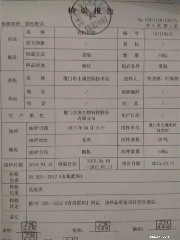 鹭盛牌有机肥相关检测报告