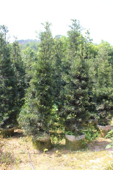 出售塔形罗汉松,头径4-6公分,高度350cm,数量700棵,袋苗,有需要的联系!