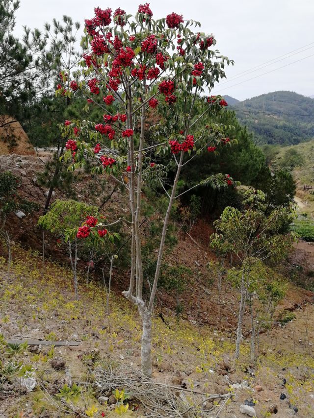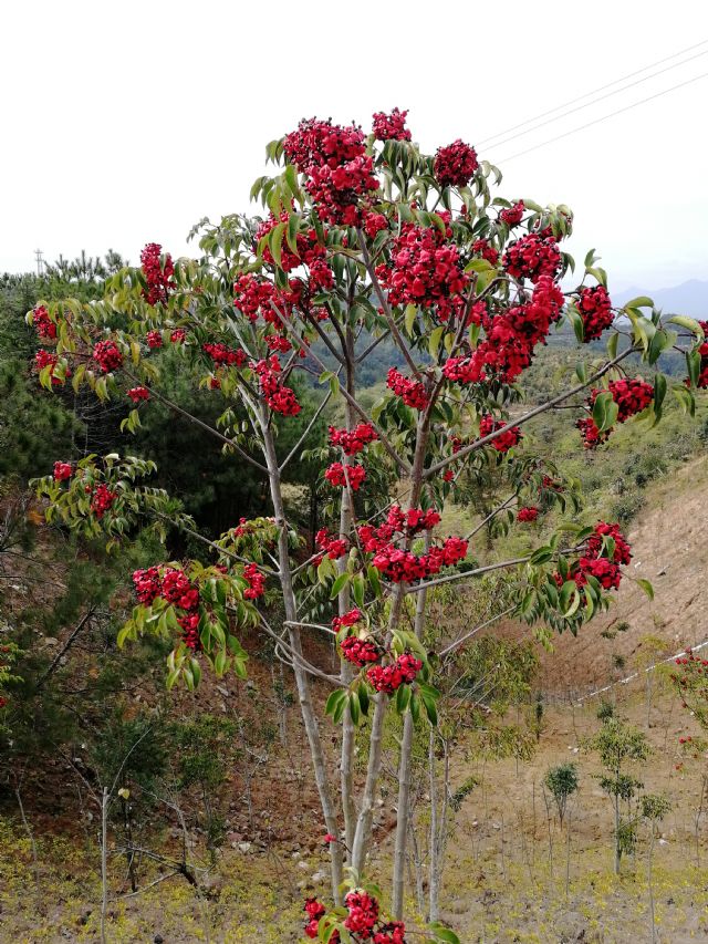 常绿乔木,结红果,果期长达5个月,具有观赏价值,重要的中药药材!