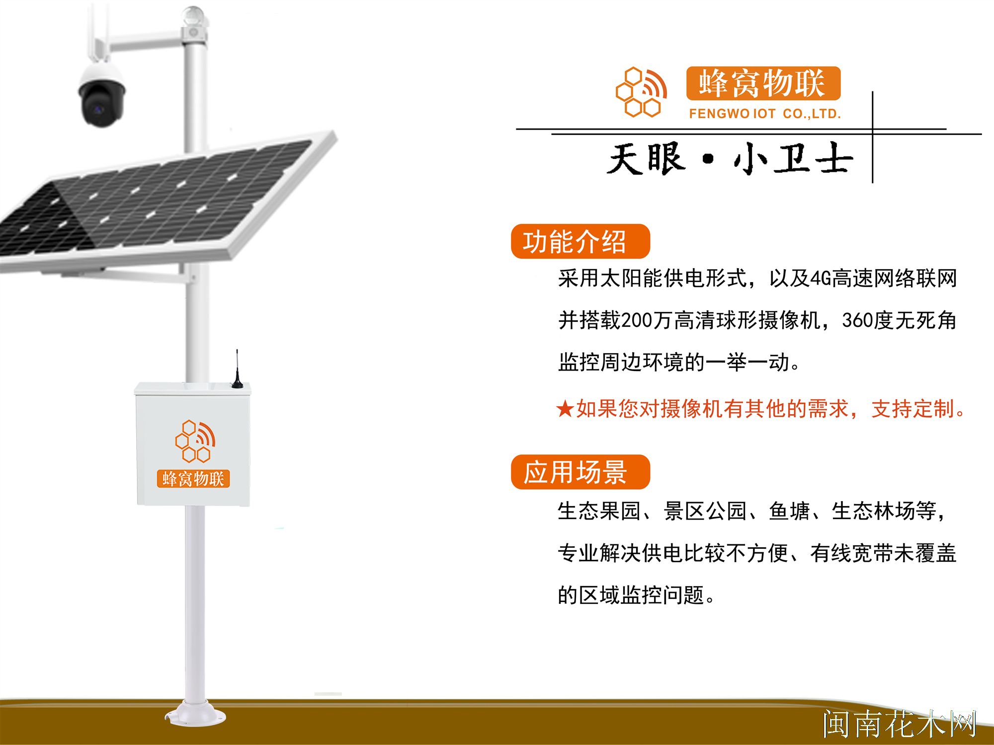 生态集园、景区公园、鱼塘、生态林场等,专业解决供电比较不方便、有线宽带未厦盖的区域监控问题。