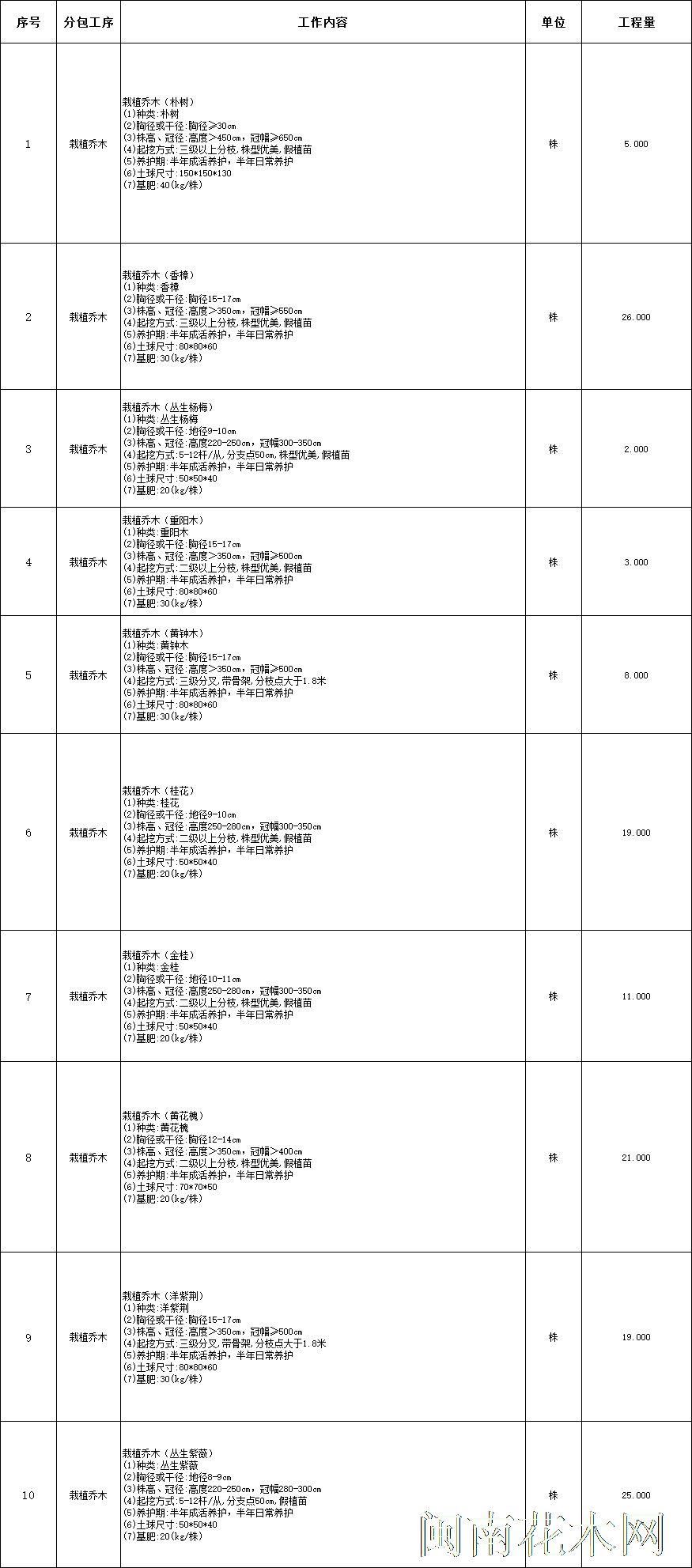 求购朴树、香樟、丛生杨梅、重阳木、黄钟木、洋紫荆