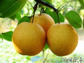 | 秋月梨:秋月梨是一种引进自日本的杂交的梨类品种,耐贮藏(,长期贮藏后无异味,特点是汁多甘甜,产量高。