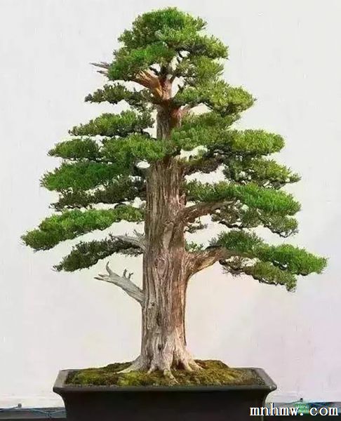 直干式造型,在盆景中最为常见,优点是树干直立,好像站军姿的军人,充满阳刚之气;缺点是比较单调呆板,缺乏动感、神韵。