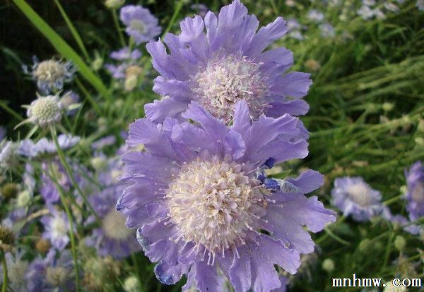 紫盆花花色变化很多,花期长。适宜布置花坛和花境,亦可盆栽或作切花。