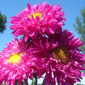 品种::翠菊有鲜红色、白色、紫色、蓝紫色、淡红色等品种;花形则有六种