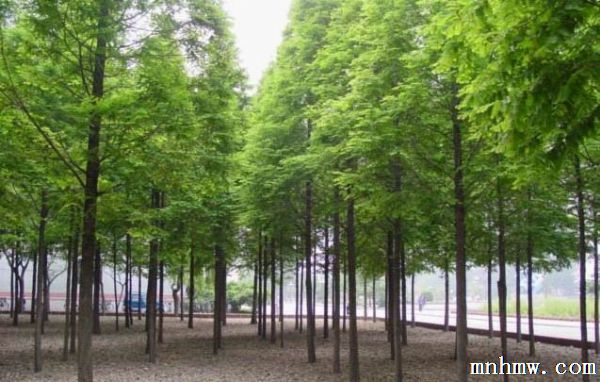 水杉(学名:metasequoia glyptostroboides hu & w. c. cheng):裸子植物杉科。落叶乔木,小枝对生,下垂。叶线形,交互对生,假二列成羽状复叶状,长1-1.7厘米,下面两侧有4-8条气孔线。雌雄同株。球果下垂,近球形,微具4棱,长1.8-2.5厘米,有长柄;种鳞木质,盾形,每种鳞具5~9种子,种子扁平,周围具窄翅。