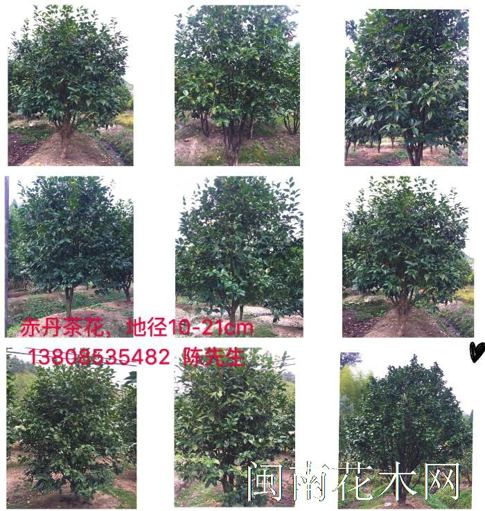 赤丹茶花:地径10-21cm, 高3.5-5m, 冠幅2-3.5m, 本场自种自销,欢迎致电咨询!