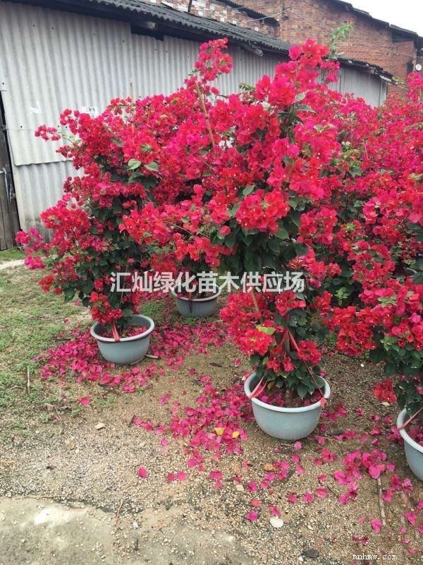 | 同安红三角梅、福建三角梅三角梅扦插是先吐芽长枝,后生根。所以,在吐枝条芽长叶时,切不可移栽、松土,以免影响生根枝条。三角梅喜高温和充足的阳光照射,泥土只要保持湿润,不怕暴晒。当年入秋时要有意蹲盆一个月,即在其枝叶茂盛后,要少浇水,保持半干半湿,让其绿叶掉落,花芽茁壮生长。“摘叶可发芽,控水可长花”这就是三角梅的特异性格。三角梅由于长期浇水、施肥和雨水冲刷,盆土容易板结,因此,必须定期松土,同时清除盆土杂草,以利于三角梅生长。否则盆土板结、积水,容易造成三角梅根系腐烂或生长不良。另外,三角梅生长速度较快,根系发达,须根甚多,每年需换盆一次。[4] 三角梅喜温暖和光照充足,不耐寒,忌水涝。适宜在肥沃、疏松、排水良好的砂质土中生长,在粘重、碱性、低湿易涝的土壤中不仅生长不良,且易烂根枯死。培养土应选腐叶土4份、园土2份、腐熟厩肥1份、锯木屑1份、河沙2份进行配制,上盆时还需掺入腐熟饺肥30g作基肥。[4] 三角梅生长迅速,生长期要注意整形修剪,以促进侧枝生长,多生花枝。修剪次数一般为1~3次,不宜过多,否则会影响开花次数。每次开花后,要及时清除残花,以减少养分消耗。花期过后要对过密枝条、内膛枝、徒长枝、弱势枝条进行疏剪,对其他枝条一般不修剪或只对枝头稍作修剪,不宜重剪,以缩短下一轮的生长期,促其早开花、多次开花。