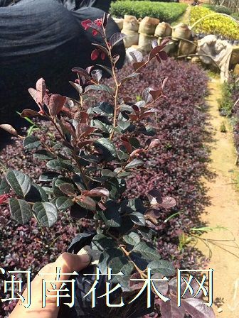 红花檵木,又名:红继木、红梽木、红桎木、红檵花、红梽花、红桎花、红花继木叶革质互生,卵圆形或椭圆形,长2~5cm,先端短尖,基部圆而偏斜,不对称,两面均有星状毛,全缘,暗红色。花3~8朵簇生在总梗上呈顶生头状花序,紫红色。果期8月。