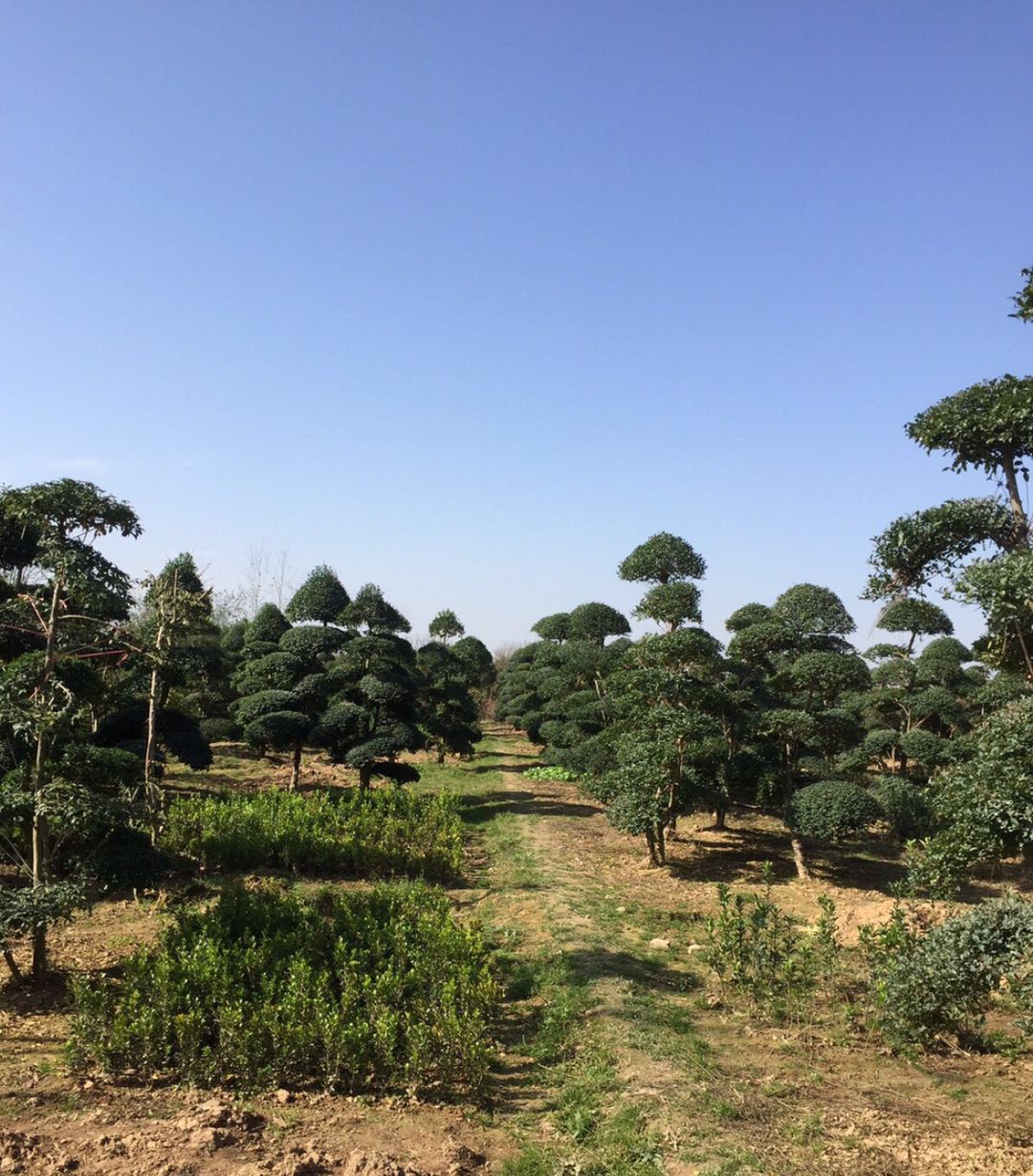 《潢川盛超园林花木种植专业合作社》自营专供各种规格小叶女贞造型上万颗。其中大规格精品一级造型2000多颗,中档造型5000多颗,便宜造型10000多颗。大云片、盆景式造型,简单修剪式造型,高度1米-4.5米,都有货。欢迎实地看货、选货。对节白蜡造型、枸骨造型、榆树造型、三角枫造型等等也都有货。